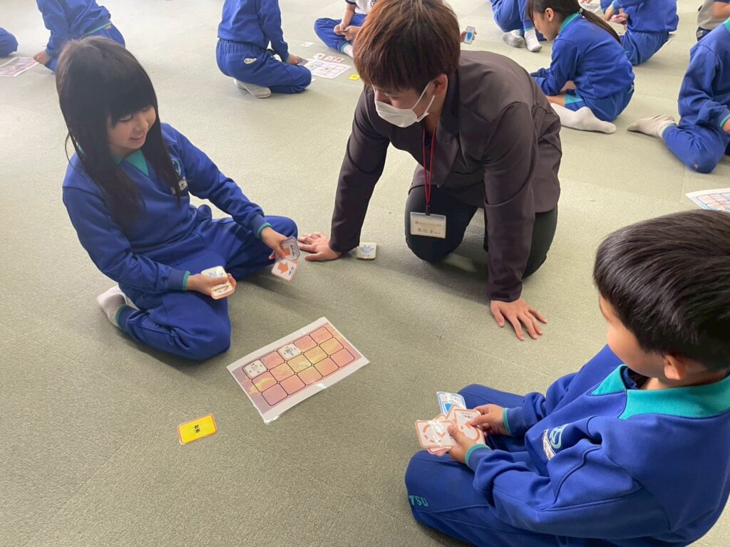 私たちの授業では、パソコンを一切使いません。 独自に考案したカードゲームを使い、15マスのボード上でキャラクターを動かす「アンプラグド(IT機器を使わない)」形式を採用しています。